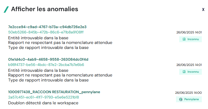 Les erreurs sont consultables depuis le bouton "Voir anomalies" en haut à droite de l'écran.