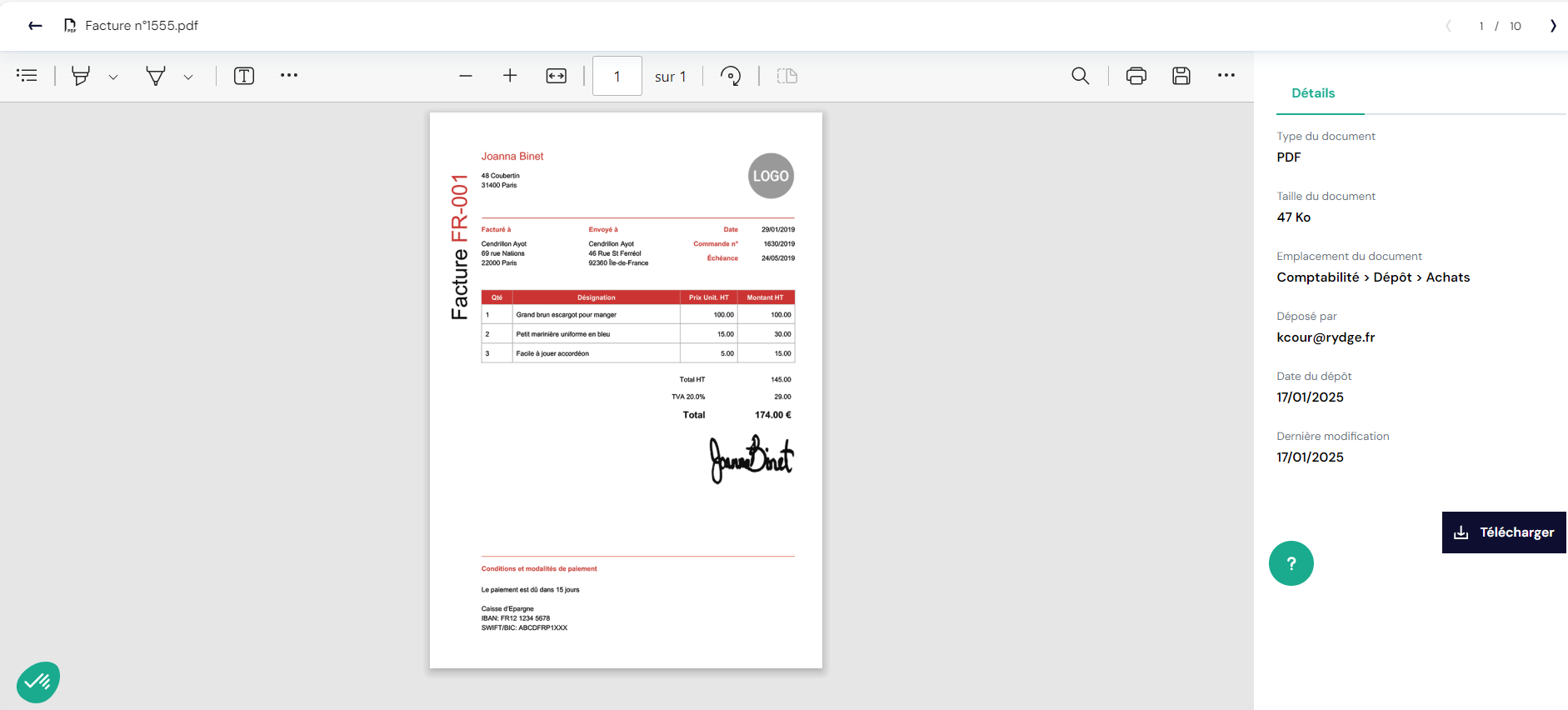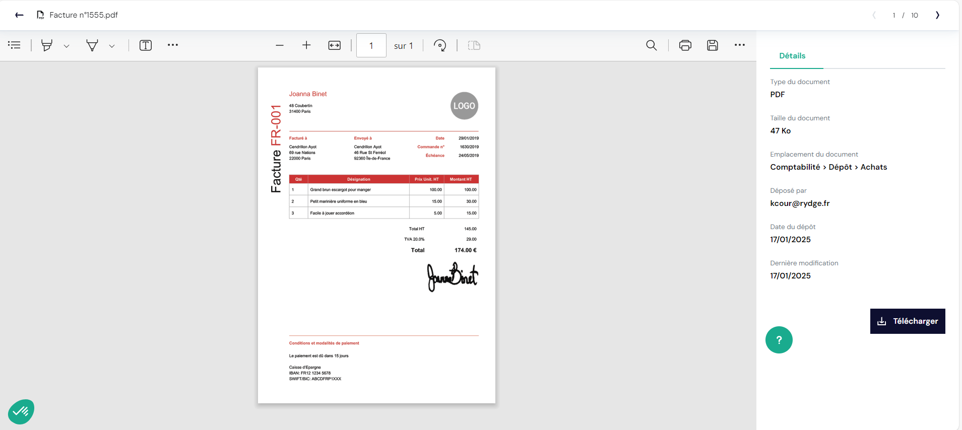 Cliquez sur un document et accédez au lecteur .PDF et à ses fonctionnalités :