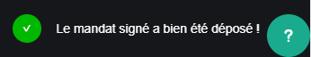 Une fenêtre en bas de page vous indique que le mandat a bien été déposé