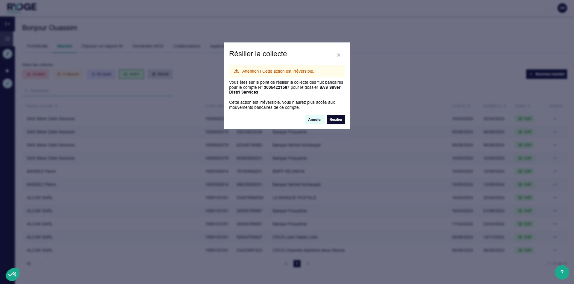 L’action de résiliation d’une collecte est disponible uniquement pour le statut « Actif ».