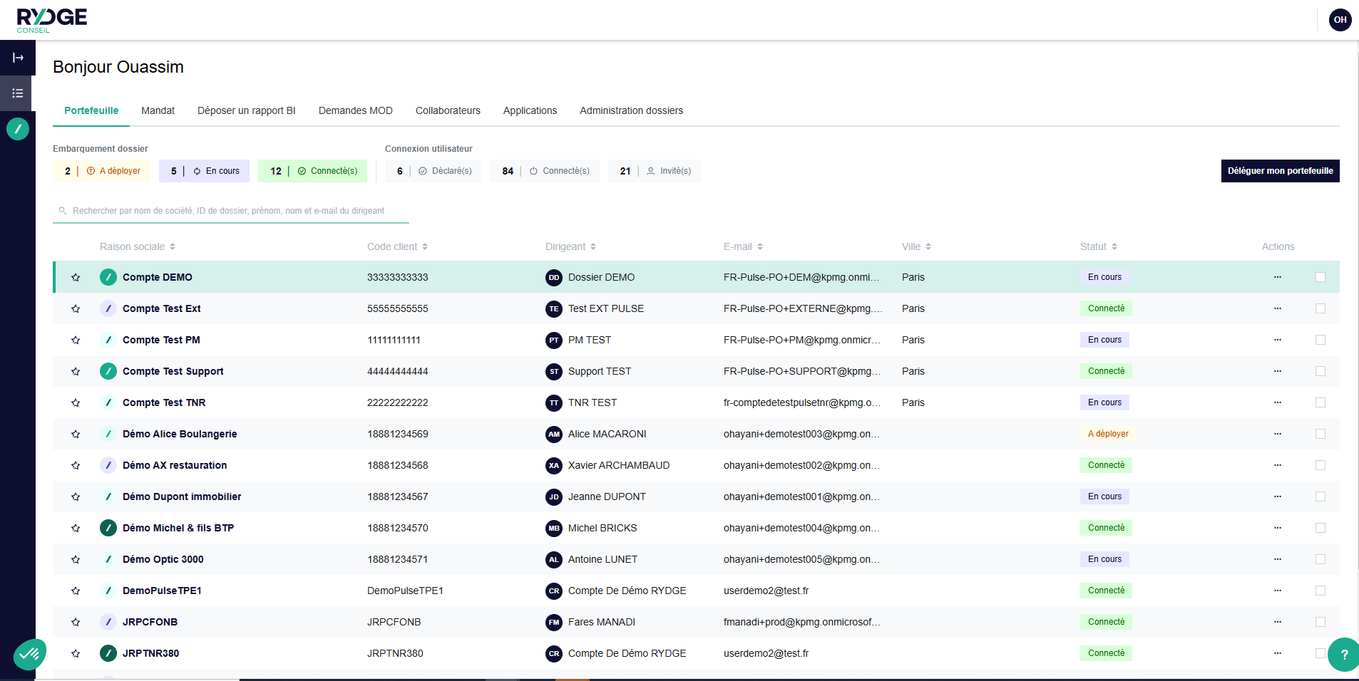 Le Portefeuille Client est la porte d’entrée de chaque collaborateur RYDGE Conseil.