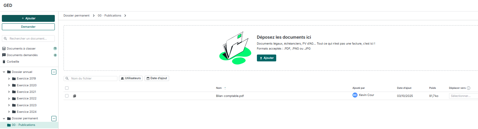 Exemple : dépôt du bilan dans le dossier "00 - Publications"