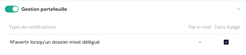 | ⚠️ Si vous décochez ce paramétrage, vous ne recevrez plus de notification lorsqu'un dossier vous est délégué. |