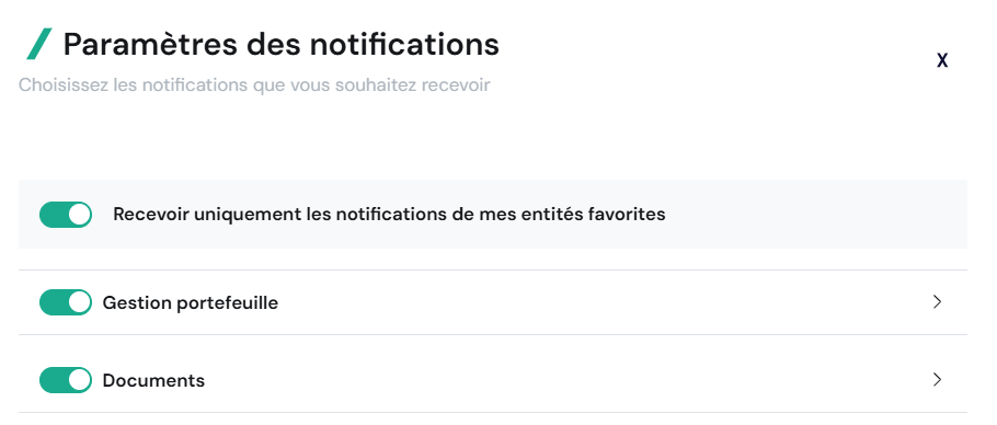 | 💡 Retrouvez le choix de recevoir vos notifications uniquement pour vos dossiers favoris depuis les paramètres du centre de notifications. |