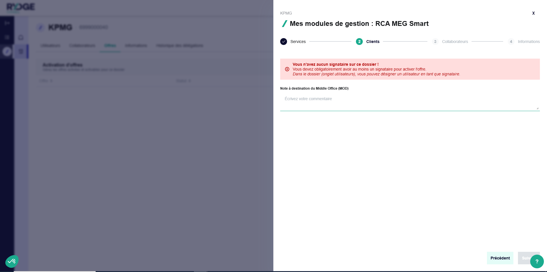 Si vous rencontrez cette erreur lors de la souscription à une offre et de facto à l'embarquement de votre Client sur la plateforme RYDGE Conseil, c'est qu'aucun signataire n'est renseigné sur le dossier.