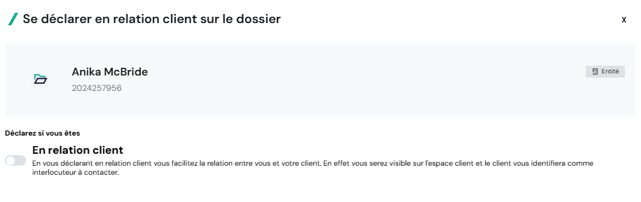 - Etape 2 : cochez le bouton "En relation Client" afin d'être identifié par