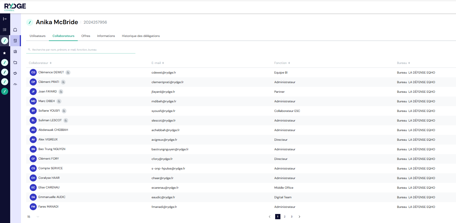 | 💡 Cette rubrique vous informe des libellés de rôles attribués à chaque Collaborateur RYDGE Conseil afin d'identifier le rôle de chacun sur un dossier |