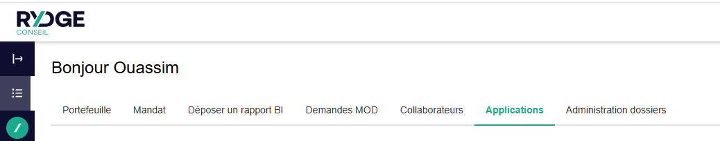 1. Connectez-vous sur la plateforme RYDGE Conseil via l'url : https://www.app.rydge.fr/collaborateur